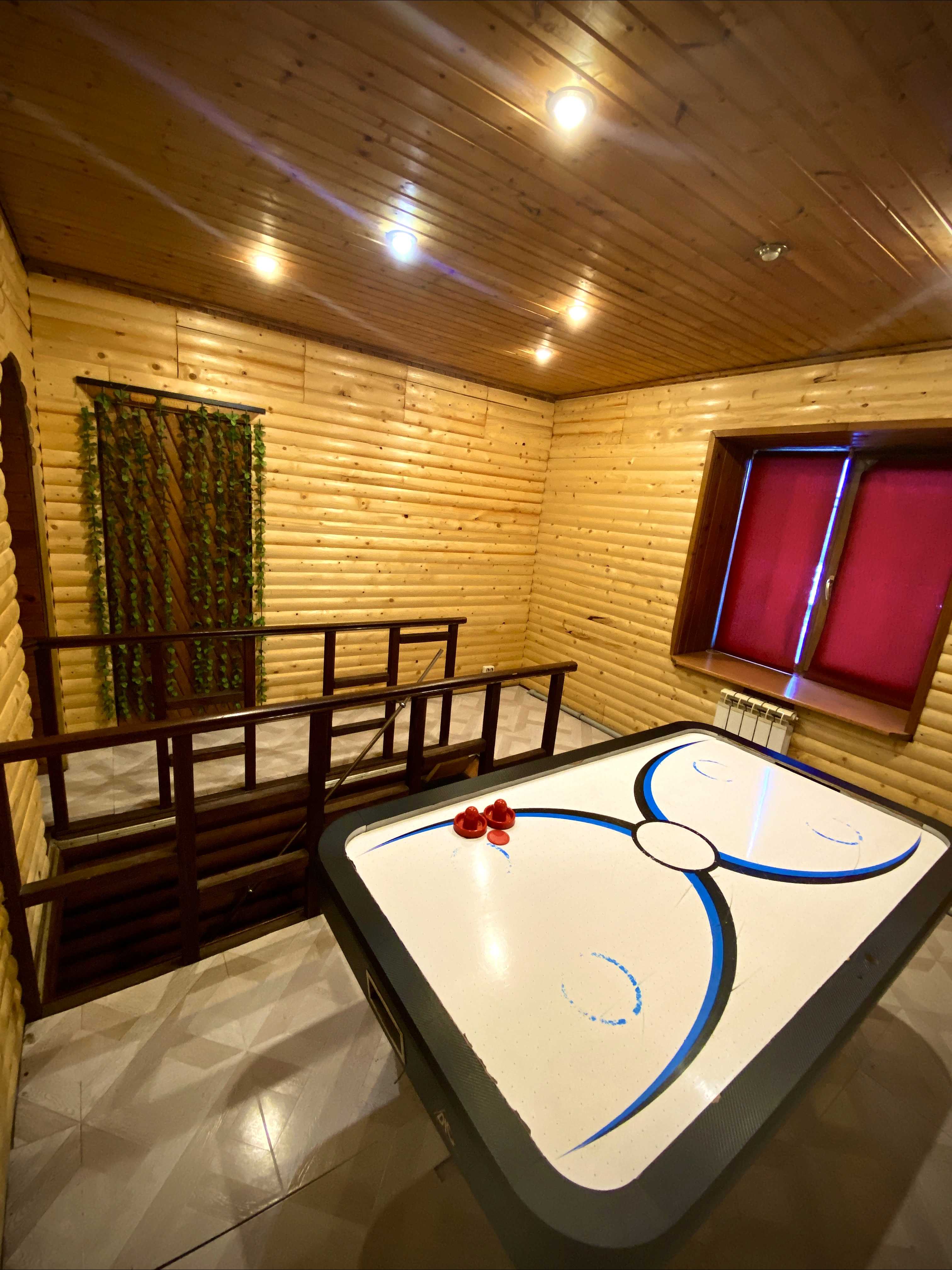 Отличная сауна с прямым выходом в бассейн. Удобная комната для приема гостей с большим количеством посадочных мест, и, как бонус, бесплатный аэрохоккей. Хорошо провели время, обязательно посетим ещё раз. 5 баллов!)